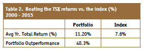 I know some of you are thinking 2015 was an awful year for the Canadian stock market and that you are glad it is over, but we need to put it in the proper perspective. You will see in Table 1 that the XIU ETF that I use as my baseline had a total return of -7.7%. This obviously did not move in the direction we want but it is not too big of a setback if you consider that this negative return follows six years of positive returns since 2008. This market pullback has actually created some good...