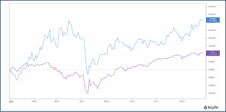 KraneShares CSI China Internet ETF’s (KWEB) investment objective is to provide investors with exposure to Chinese-based companies that operate their businesses on the internet. The long-term goal is to capture growth opportunities that these companies are expected to attain as they continue to benefit from increasing domestic consumption of Chinaís growing middle class. These companies mostly replicate the successful business models of Western countries, such as Amazon, Google, Meta (formerly Facebook), etc. and customize themselves to fit with the Chinese demographic, which is still not as mature as the U.S. market.